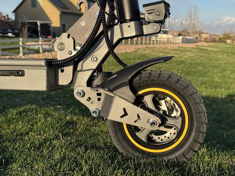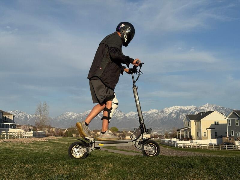 I am very happy this electric scooter. The 700W motor provides great power, allowing me to reach speeds up to 28 mph effortlessly. The off-road 10 inch tires, along with the dual suspension, make the ride smooth even on slightly rough roads. The braking system is responsive and reliable, giving me confidence in safety.